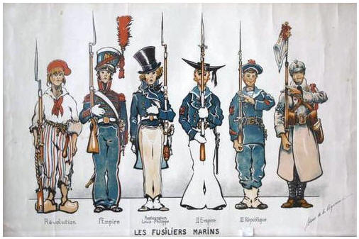 costume des fusiliers marins de la Révolution à la guerre de 14-18.