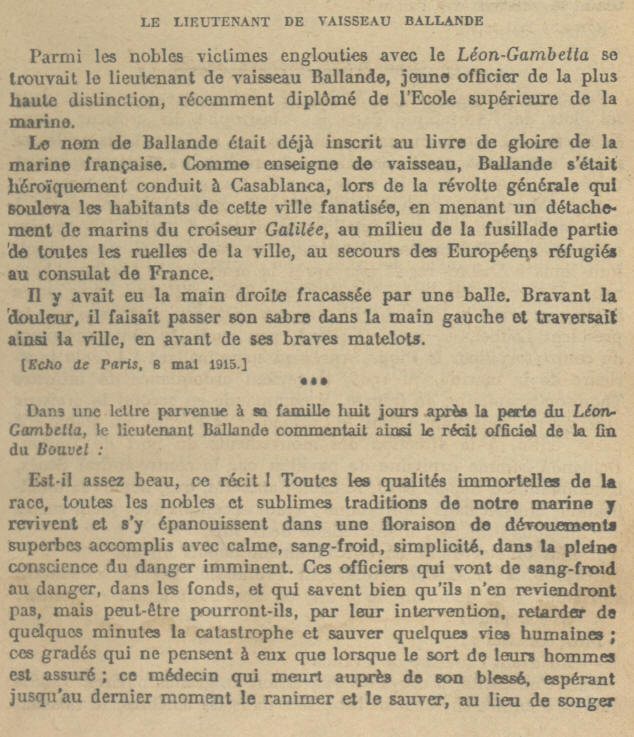 l'Armée navale en avril 1915 : "Pendant l'engloutissement du LEON