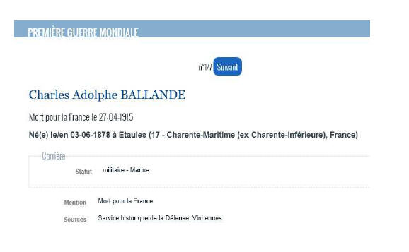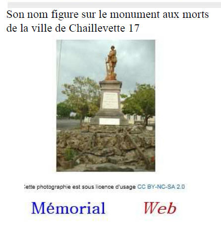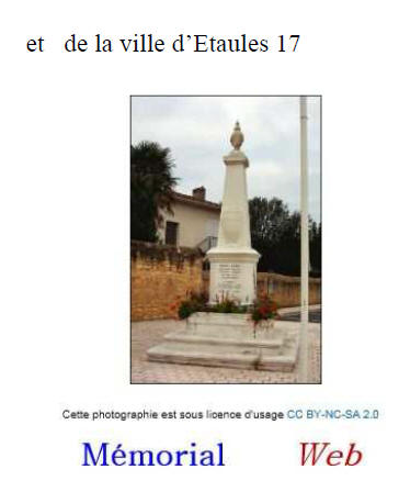 Né le 3 juin 1878 à ÉTAULES (Charente Maritime) - Décédé le 27 avril