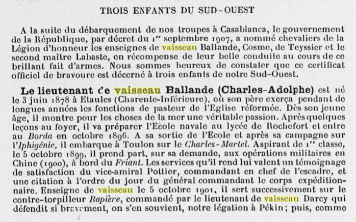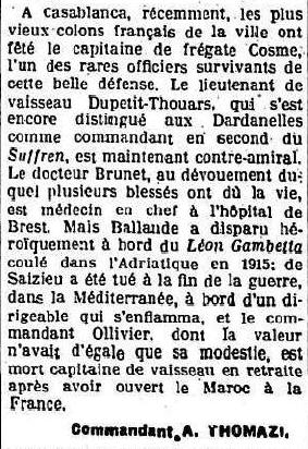 de Vaisseau a fait une conférence qui a été éditée dans le bulletin