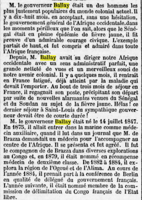 français. Bernard Cartier, Noël Ballay, médecin, explorateur,