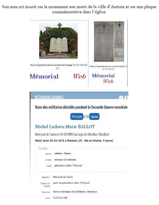 (Ille-et-Vilaine) - Décédé le 9 janvier 1945 au large de GIBRALTAR