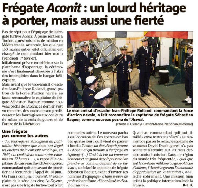 prend le commandement de la frégate type La Fayette (FLF) Aconit