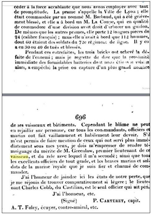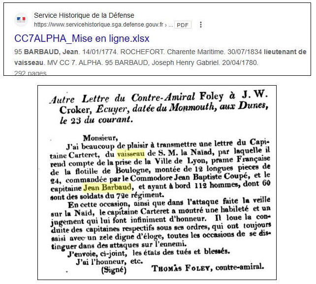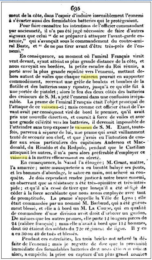 septembre 1811 (lettre ci après) commande la Prame Ville de Lyon,
