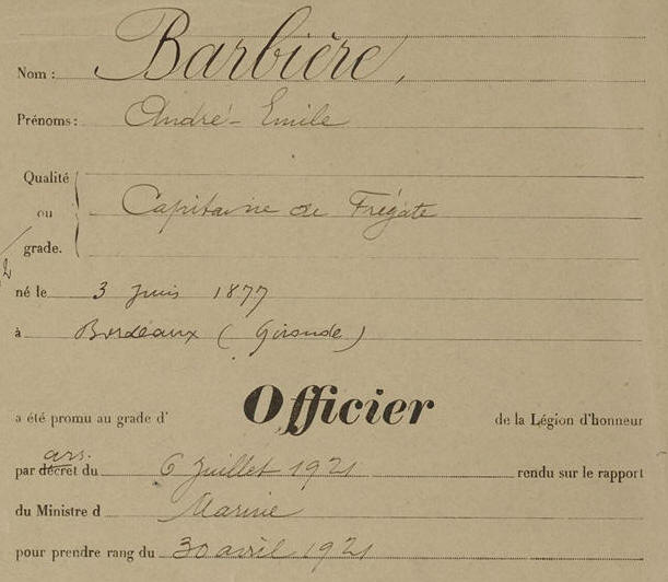 décembre 1917, Commandant le torpilleur "FRANCISQUE".