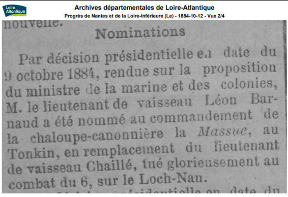 (nomination du 3 octobre 1884), Commandant la chaloupe-canonnière