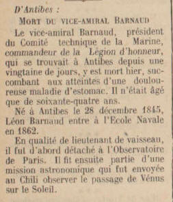 (Alpes-Maritimes) - Décédé le 29 août 1909 à ANTIBES