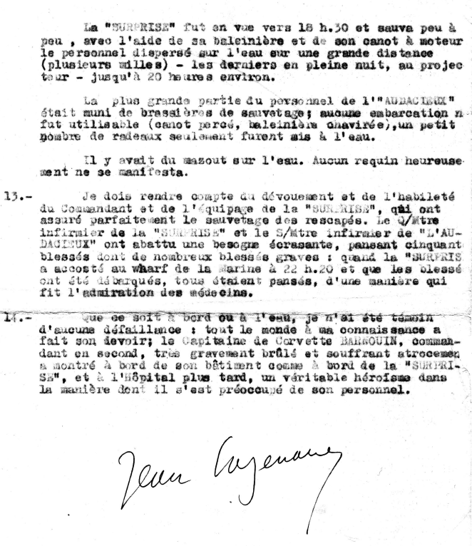 premières minutes de combat, il seconde avec héroïsme le CV chef de
