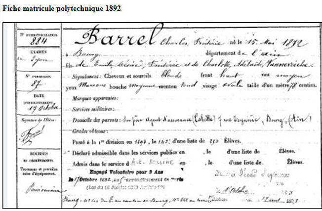 Élève de l'École polytechnique promotion 1892, opte pour