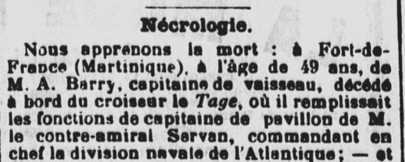 Décédé le 31 mars 1902 à FORT de FRANCE (Martinique), à bord du