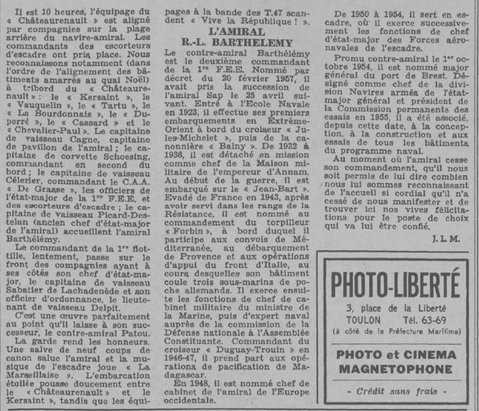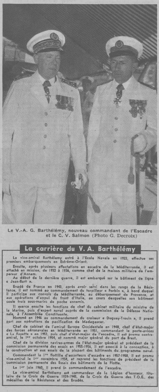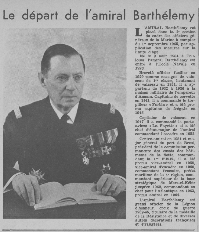 Vice-Amiral d'escadre BARTHÉLEMY est Commandant en chef pour les