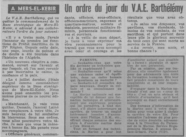 alors qu'il commande la base de Mers El Kébir, il sauve la vie de