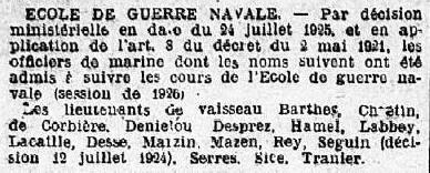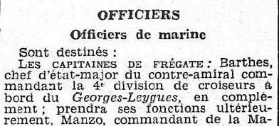 capitaine de vaisseau Barthes commandant du Jean Bart est promu