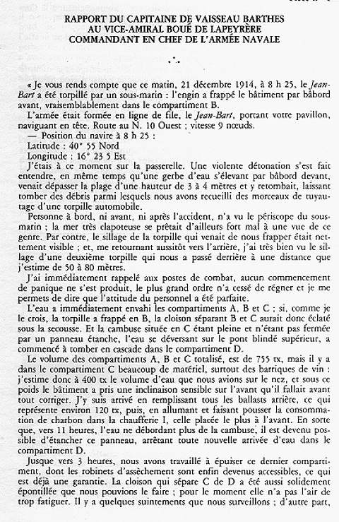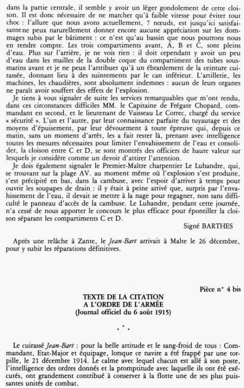"JEAN-BART" de 1912 à juillet 1915, il est cité à l'ordre de l'Armée