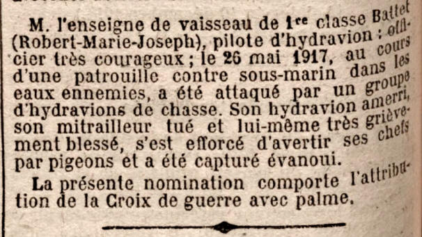 d'une haute valeur morale. Chef d'une escadrille d'hydravions,