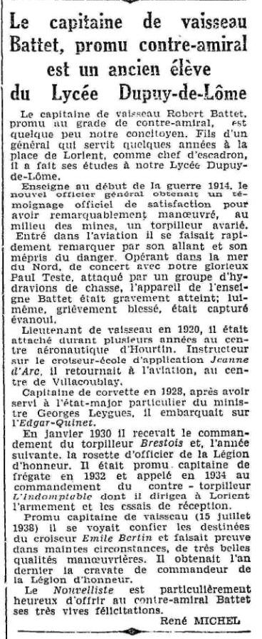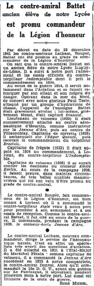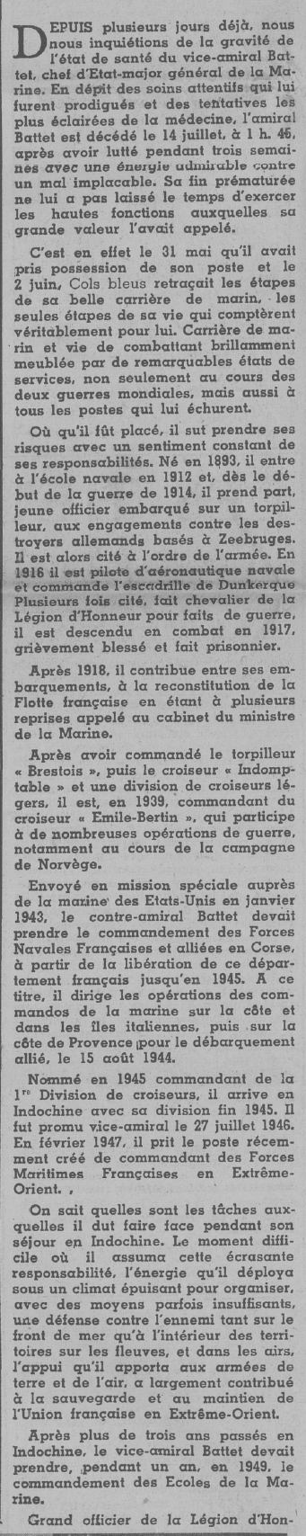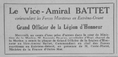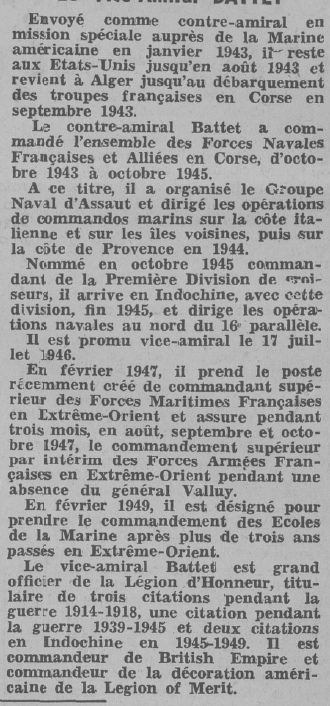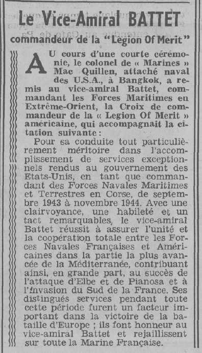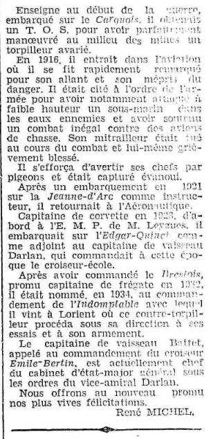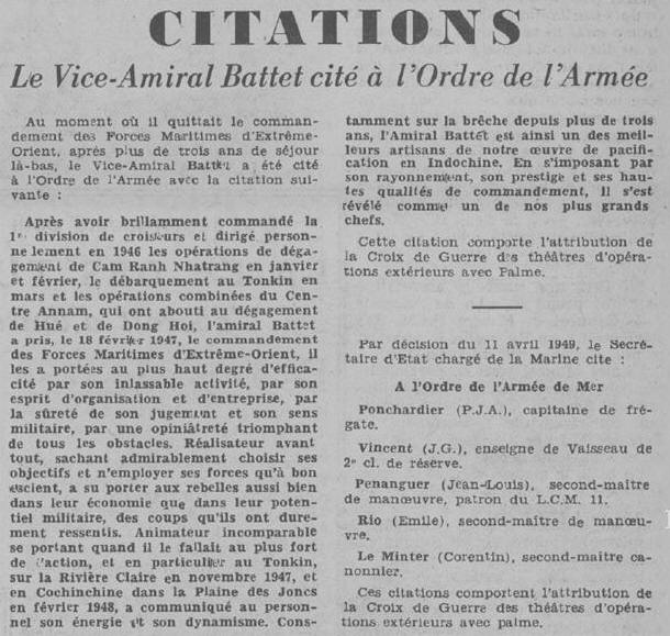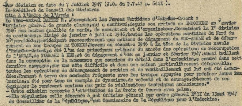 de vaisseau BATTET (R.M.J.) a brillamment pris part aux opérations