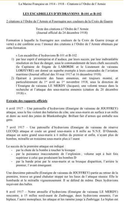 d'escadrille d'hydravions B 101 et B 102 dans le secteur de