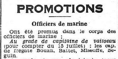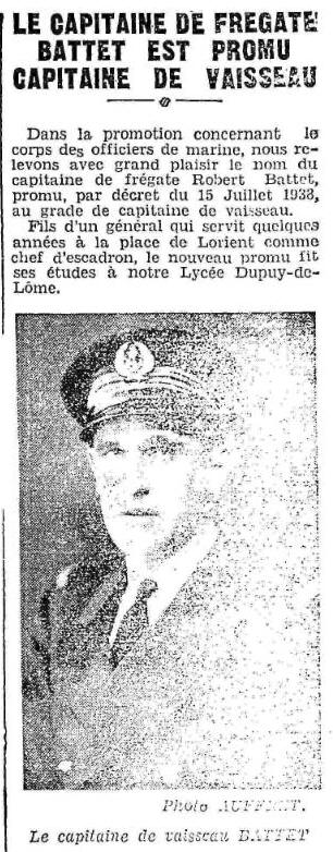 Le 1er octobre 1934, Commandant le