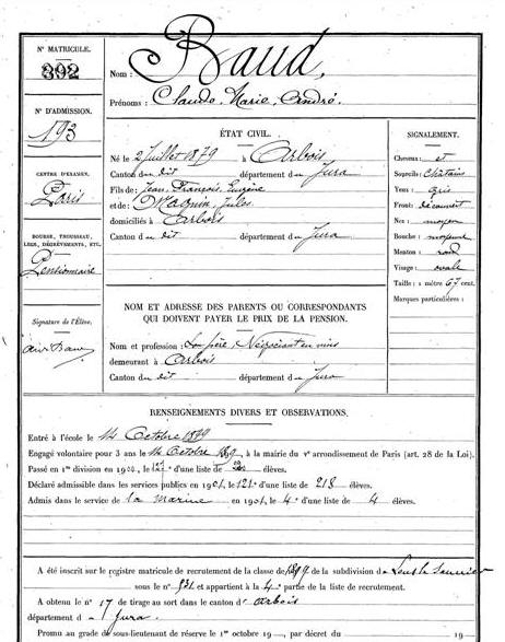 Élève de l'École polytechnique en 1899, opte pour la Marine