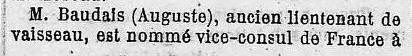 janvier 1885, étant Consul de 2ème classe et Commissaire du