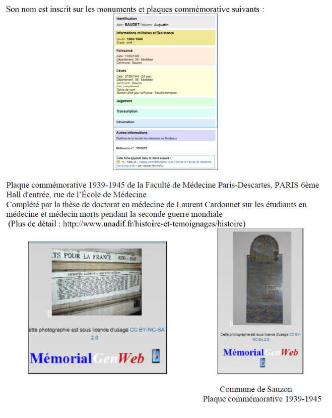 En 1940, Augustin est en service à l'hôpital maritime de Brest.