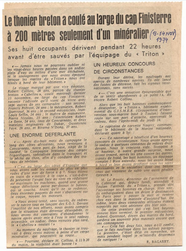 de l’équipage d’un chalutier dans le golfe de Gascogne.
