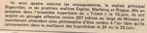 laquelle 4 plongeurs atteindront 307m au large de Monaco et battront