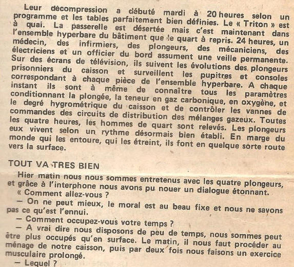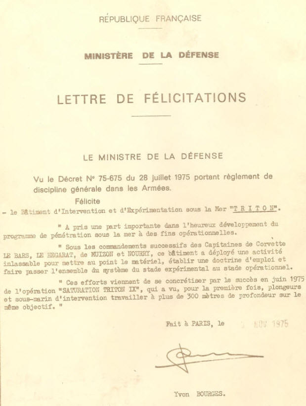 d’intervention sous la mer (Triton) mettant en œuvre des plongeurs