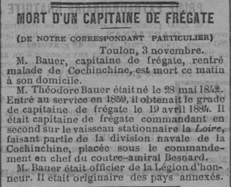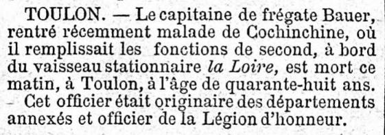 (Bas-Rhin) - Décédé le 3 novembre 1890 à TOULON (Var)