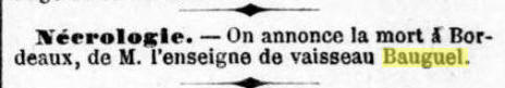 Inhumé au cimetière de BORDEAUX-CAUDERAN le 30 octobre 1883,