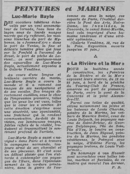 En 1954, Bayle réalise sur la Seine une grande maquette de