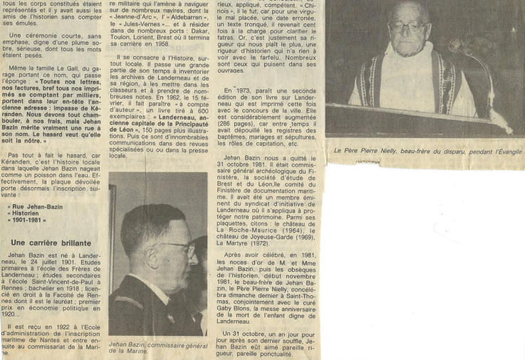 Quelque temps après sa mort, la municipalité de Landerneau décide de