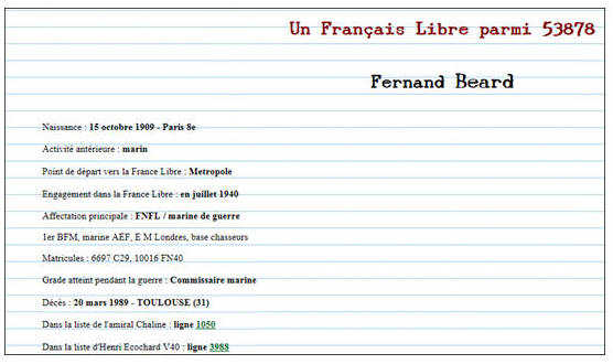 Fernand, BEARD Matricule : 6697C29 10016FN40 Dernier grade :