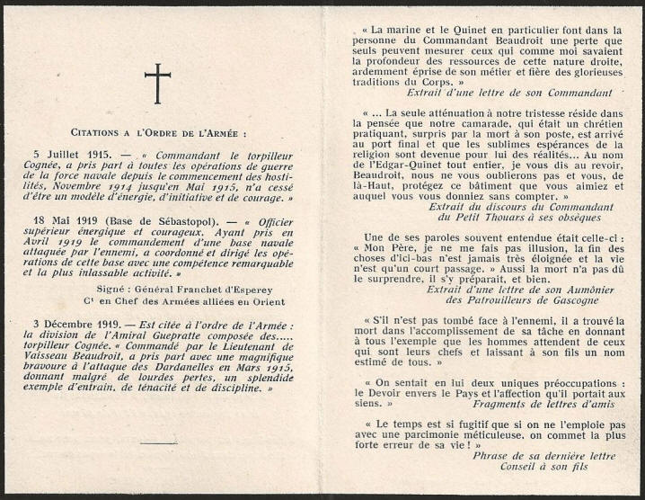 à l'expédition des Dardanelles et est cité à l'ordre de l'Armée