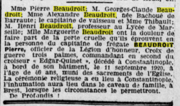 croiseur "EDGAR QUINET" à son décès