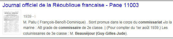Commissaire de 2ème classe le 1er aout 1939