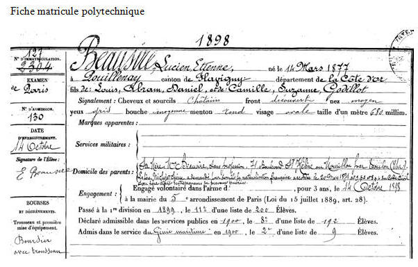 Ingénieur de 1ère classe le 1er novembre 1905.