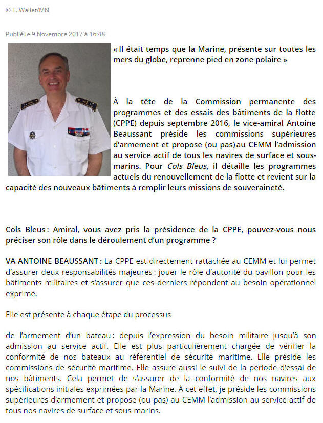 de la République, le contre-amiral Beaussant (Antoine, Pierre,
