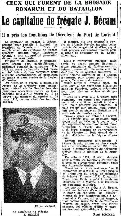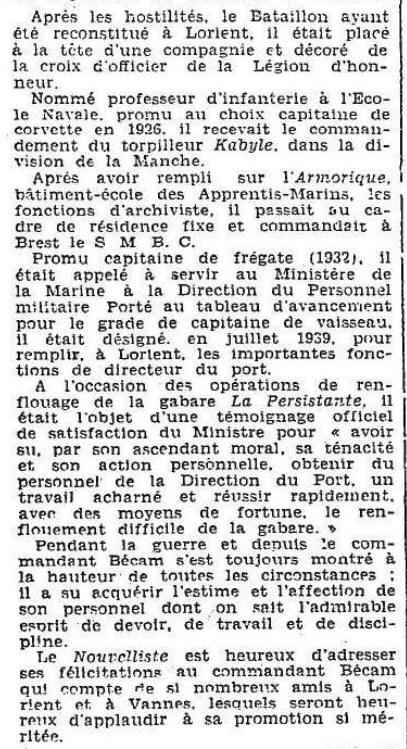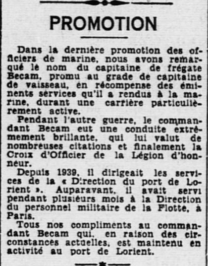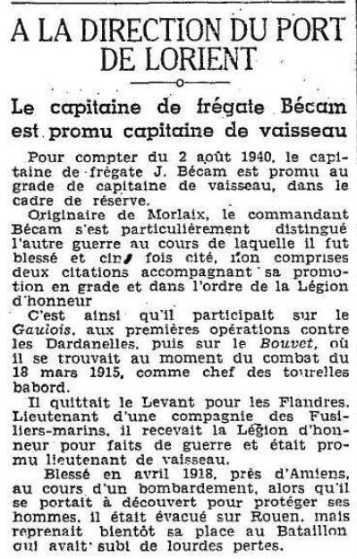 Extrait Le Nouvelliste du Morbihan / 20 septembre 1940