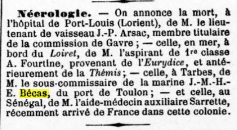 TARBES (Hautes Pyrénées) - Décédé le 30 septembre 1878 à TARBES
