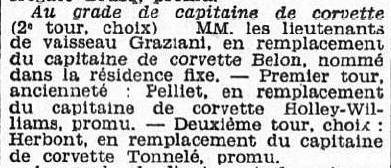 de vaisseau de 2ème classe le 5 octobre 1912; port BREST.