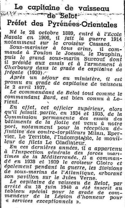 sous-marins de BIZERTE; inscrit au tableau de concours de la Légion