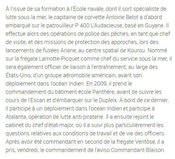 fait reconnaître le Capitaine de Corvette Antoine Belot comme