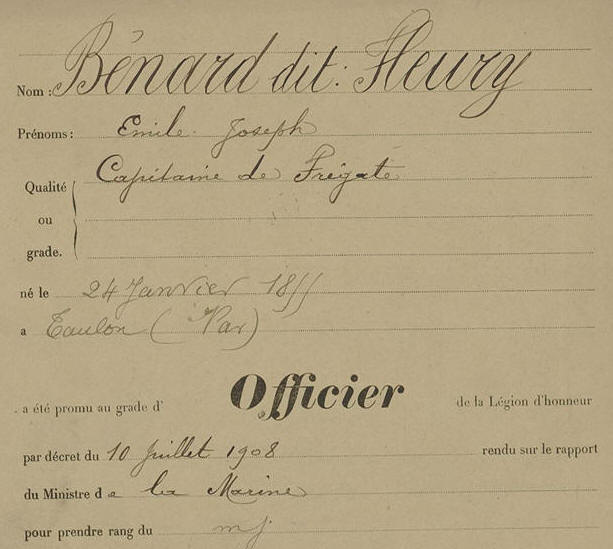 d'Honneur le 13 juin 1884, étant sur le "FANFARE".
