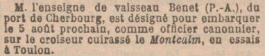 comme officier canonnier sur le croiseur cuirassé Montcalm.