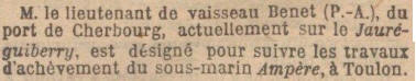 pour suivre les travaux d’achèvement du sous-marin Ampère.