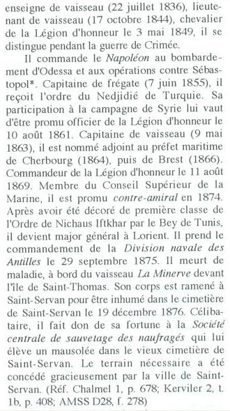Il meurt en service (à bord de la Minerve), alors commandant de la