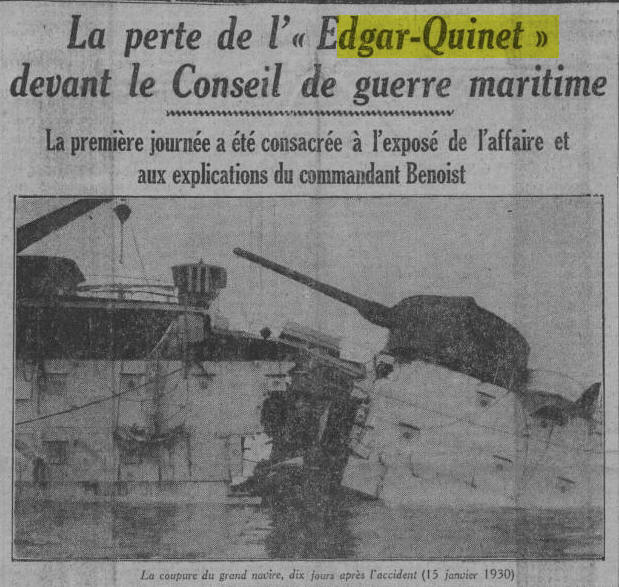 QUINET", lors de sa perte sur une roche, en janvier 1930
