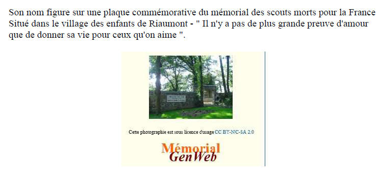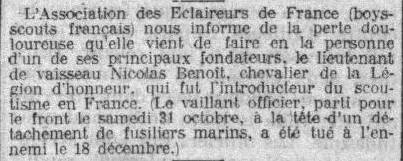 Nationale parrainé par les Scouts de France en 1940 / Lien web -