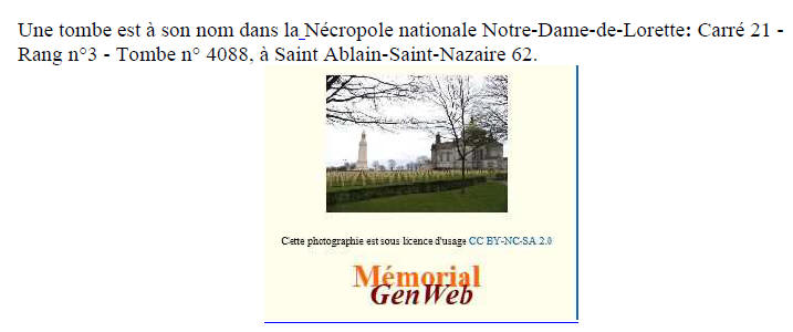 SAINT NAZAIRE, près d'ARRAS (Pas de Calais). Tombe 4088, carré 21.